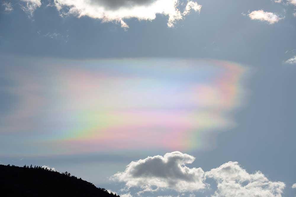Wir befinden uns in Spanien in der Region Tarragona im Bereich des Deltebre. Gegen 17.30 Uhr sehen wir eine seltsame Erscheinung am Himmel, die aus der Ferne wie der Teil eines Regenbogens aussieht. Er verändert jedoch ständig seine Form und stellt sich teilweise als Streifen dar und dann wiederum als riesiges Quadrat. Als wir immer näher kommen, sind wir uns sicher, daß es sich offensichtlich um Polarlichter handelt (Aurora borealis).